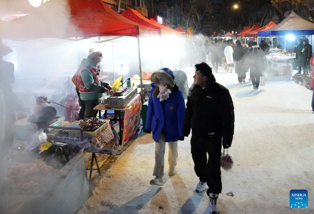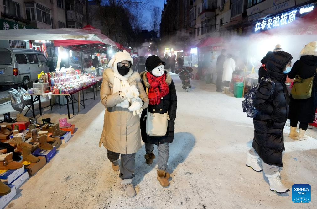 Tourists visit the Hongzhuan Morning Market in Harbin, northeast China's Heilongjiang Province, Jan. 22, 2024.